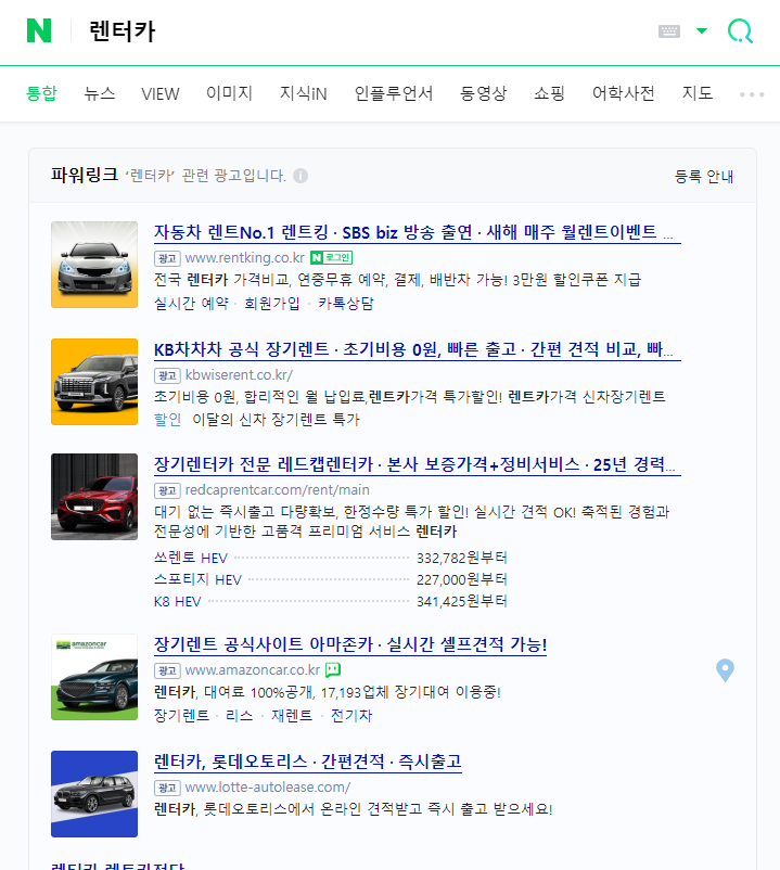 파워링크란 네이버에서 검색 시 최상단에 노출되는 광고 영역이다.
